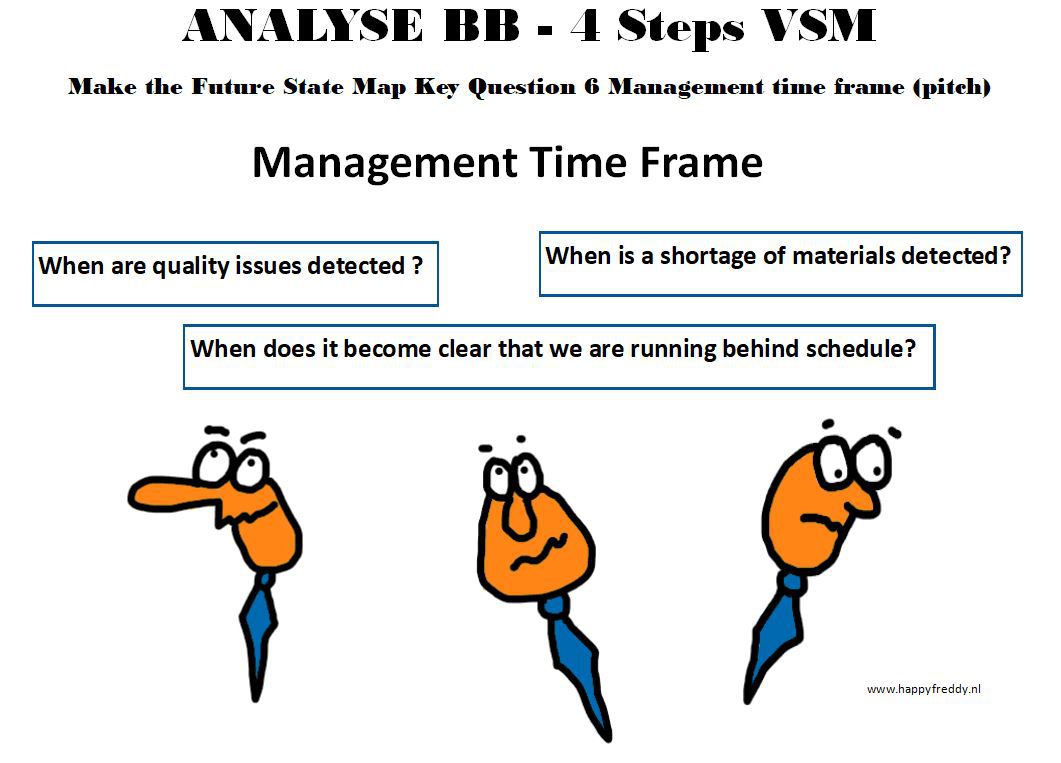 Serious Stuff – Lean – Green & Black Belt Cartoon-00216-LSS-BB-ANALYSE-4-steps-VSM-Make-Future-State-Map-Key-Question-6-Management-time-Frame-PITCH Afbeelding 219 van 304